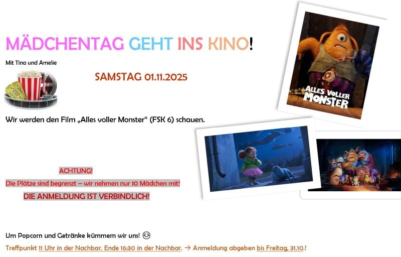 +++ !!! am 17.05.25, 10:15 - 14:30 in der Nachbar !!! +++ Wir gehen ins Kino |