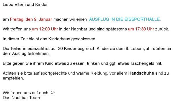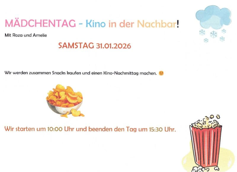 +++ !!! am 31.01.2026. Von 10:00 bis 15:30 in der Nachbar !!! +++ Es geht ins Kino |