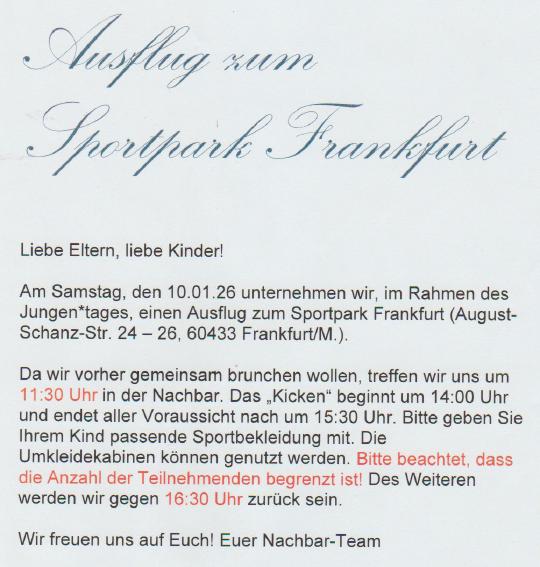 Samstag, 10.1.2026, Treffen um 11:30 Uhr in der Nachbar |